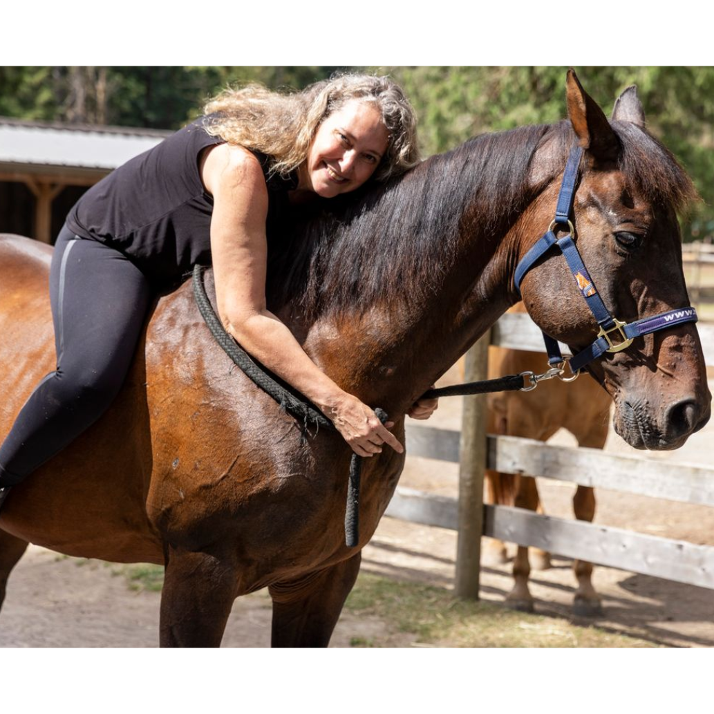 I live a life rooted in resilience. As a cancer survivor and someone who overcame a near-fatal motorcycle accident on the Sea to Sky Highway, I’ve learned to face adversity with grace. I’m a proud mother of four grown children and have been clean and sober for 38 years. My journey fuels my passion for healing—both human and horse—and inspired the creation of Unbridled Grace.